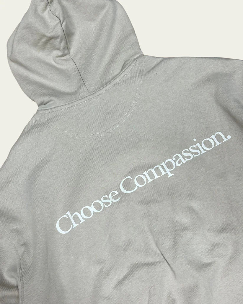 Make the compassionate choice with our beige Choose Compassion oversized hoodie.
